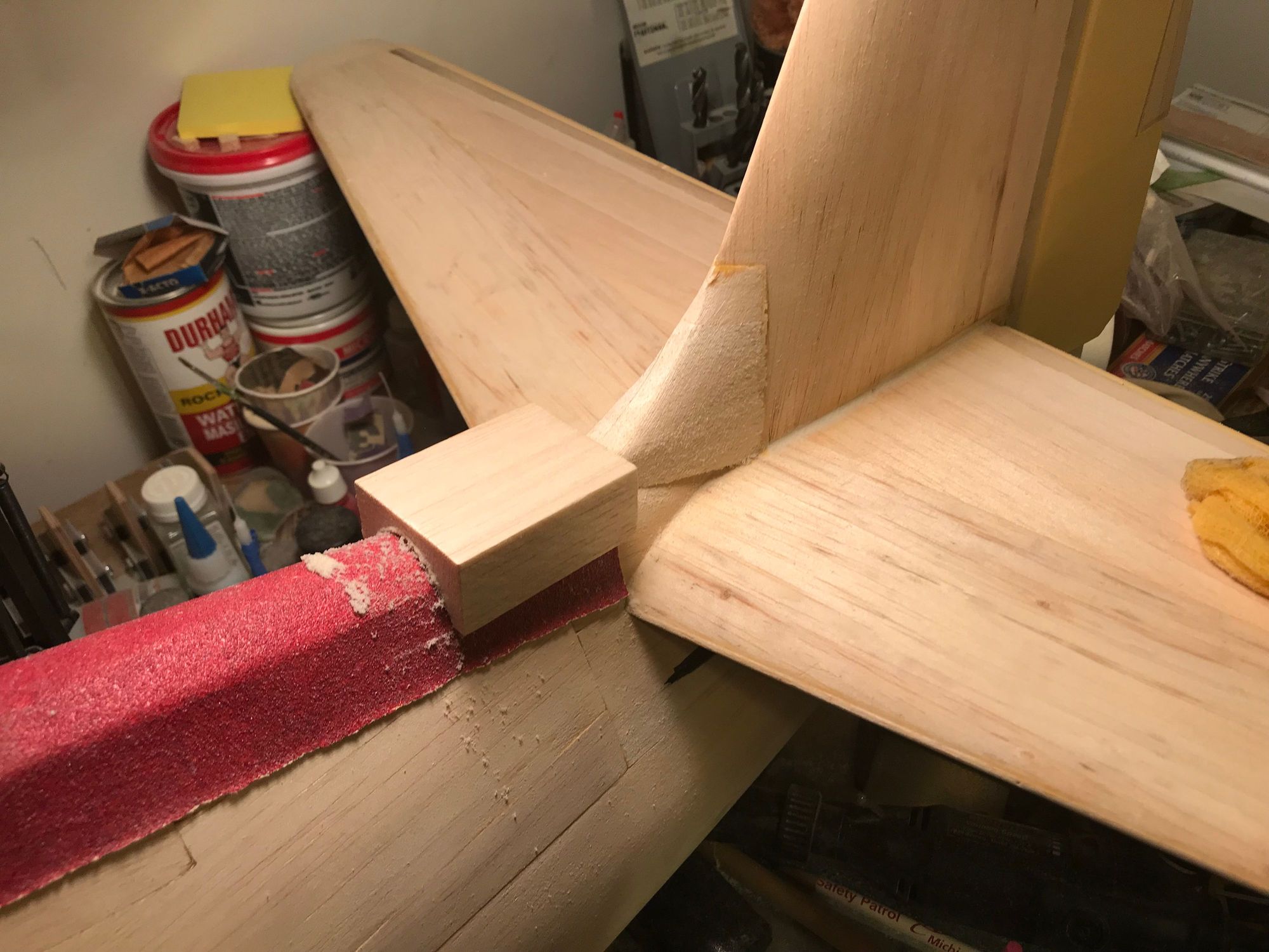 Sanding second block to fit fuse.