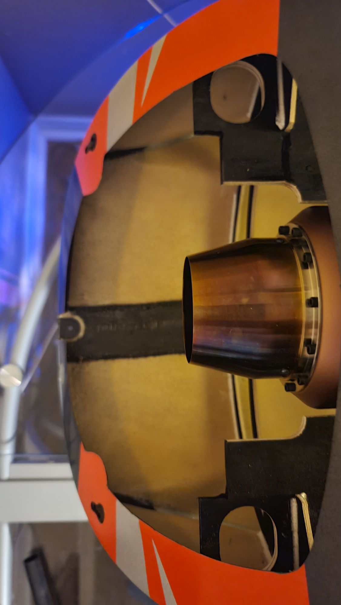 10mm in depth, back to front, was removed so that the bell mouth of the thrust tube would not touch the engine rails